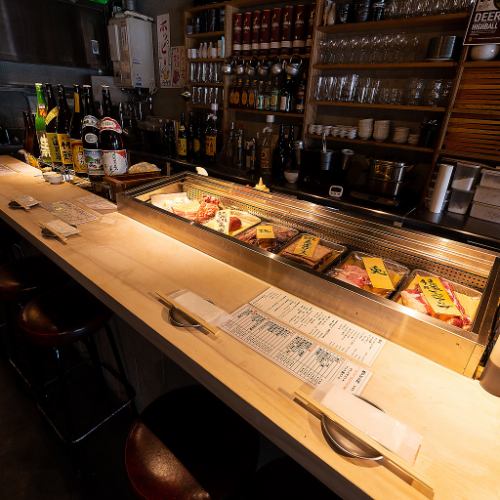 カウンター中央にネタケースがあり当日の希少肉やおすすめ部位が並んでいます。スタッフに聞きながらお好きな肉を最高の焼き加減でご提供いたします。スタッフと仲良くなると特別なことも有や無や